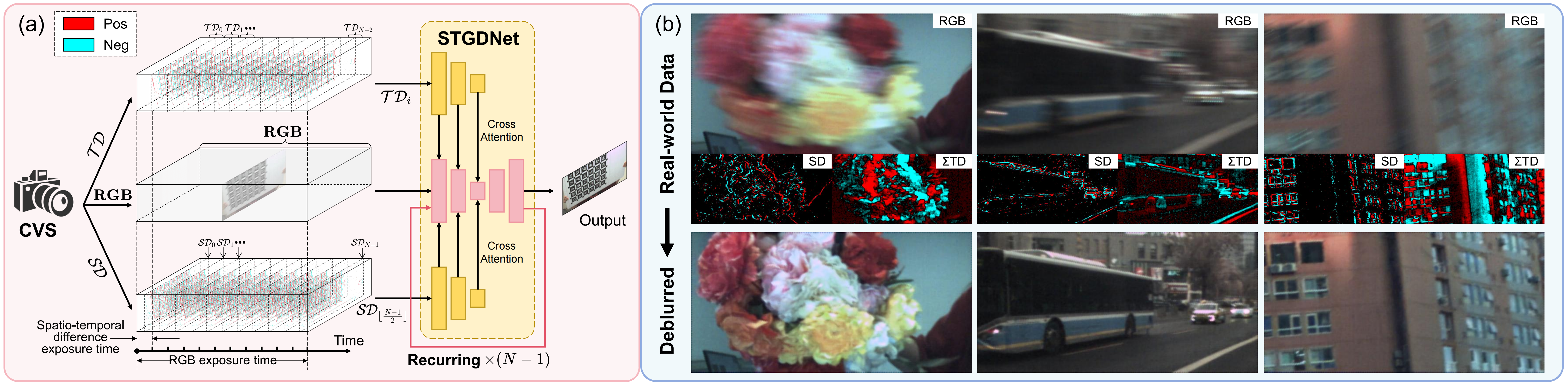 Based on the complementary vision sensor (CVS), Tianmouc, we propose $\textbf{S}$patio-$\textbf{T}$emporal Difference $\textbf{G}$uided $\textbf{D}$eblur $\textbf{N}$et (STGDNet) for motion deblurring. It achieves strong performance in real-world extreme blur scenarios.